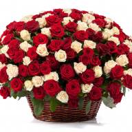 Цветы в корзине завоевали тысячи поклонников благодаря красивому и удобному оформлению. 201 красная и кремовая роза выглядит впечатляюще и служит отличным помощником в извинении или попытке удивить любимого человека. Каждый член семьи обрадуется столь внушительному подарку, особенно зная, что красные розы символ любви, а кремовые показывают чистоту и бескорыстность.